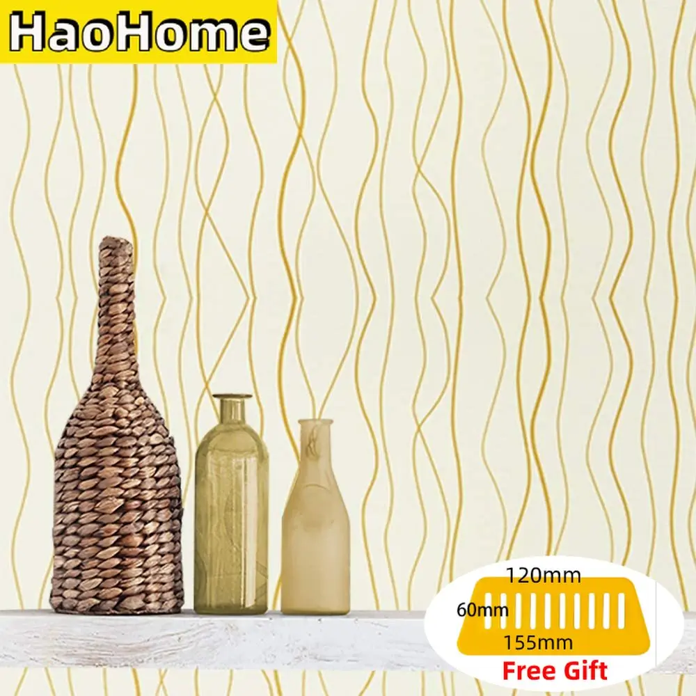 Name: Stick Wallpaper Wall-Covering-Film Beige Gold Removable Cabinets-Decor Haohome Stripe